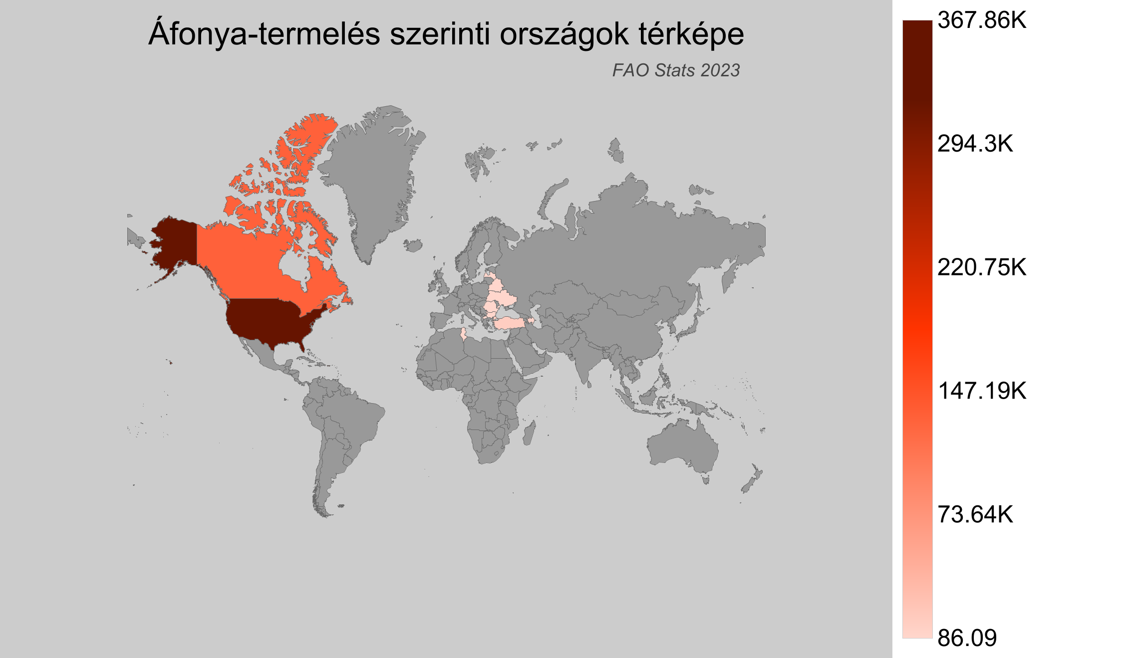 - Magyarország nem szerepel a FAO által jegyzett áfonya termelő országok között, így nem jelentős része az adatoknak.