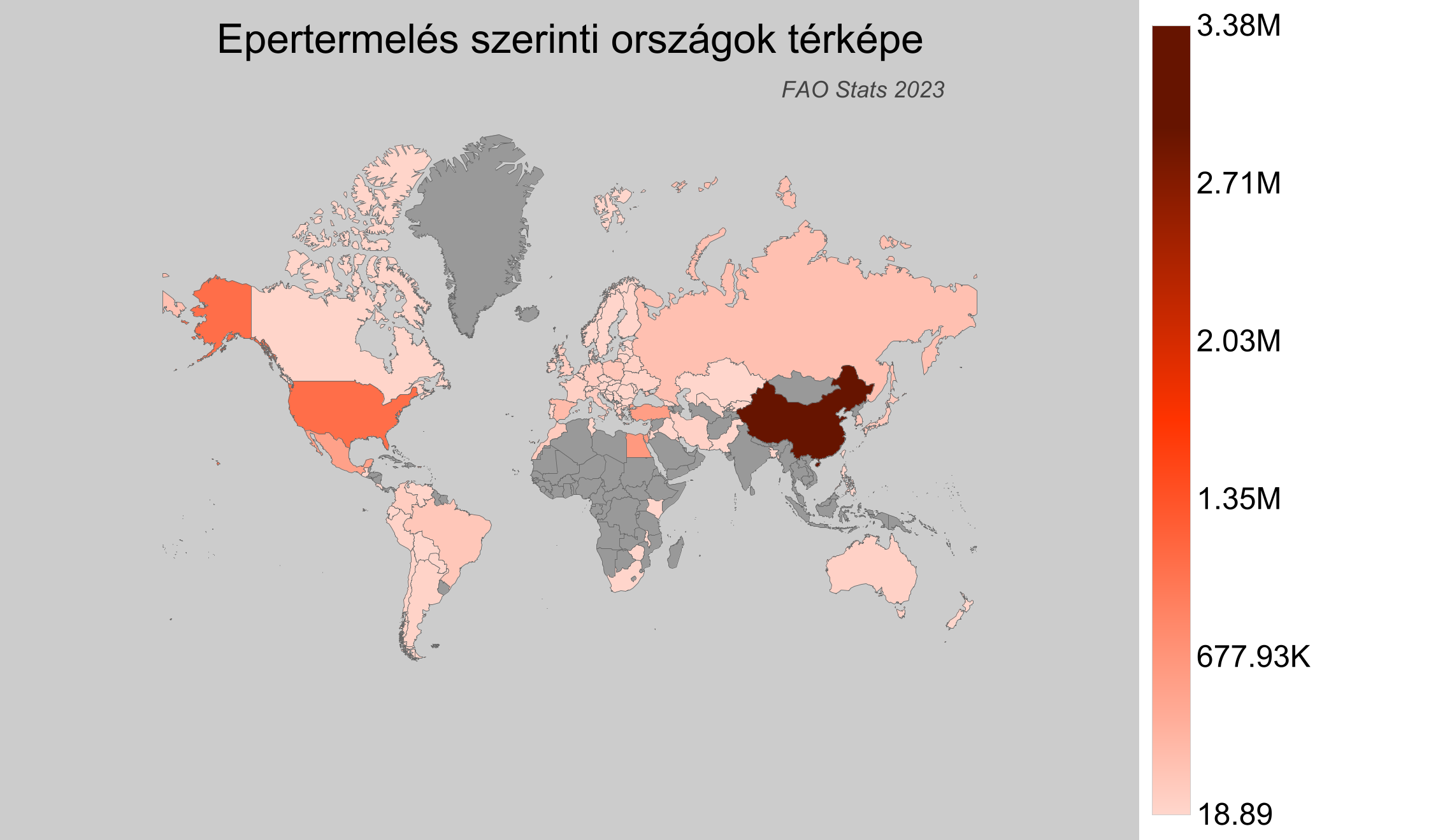 Az eper világszerte népszerű gyümölcs, amely nemcsak ízvilágával, hanem tápanyagtartalmával is hozzájárul az egészséges étrendhez. Az eper termesztése mérsékelt éghajlatú régiókban a legkedvezőbb, mivel ezekben az éghajlati feltételekben érzi magát a legjobban. Az alábbiakban az eper termesztésének globális statisztikáit mutatjuk be 2023-ra vonatkozóan, az Élelmiszer-és Mezőgazdasági Szervezet (FAO) legfrissebb, 2025-ös adatai alapján.
