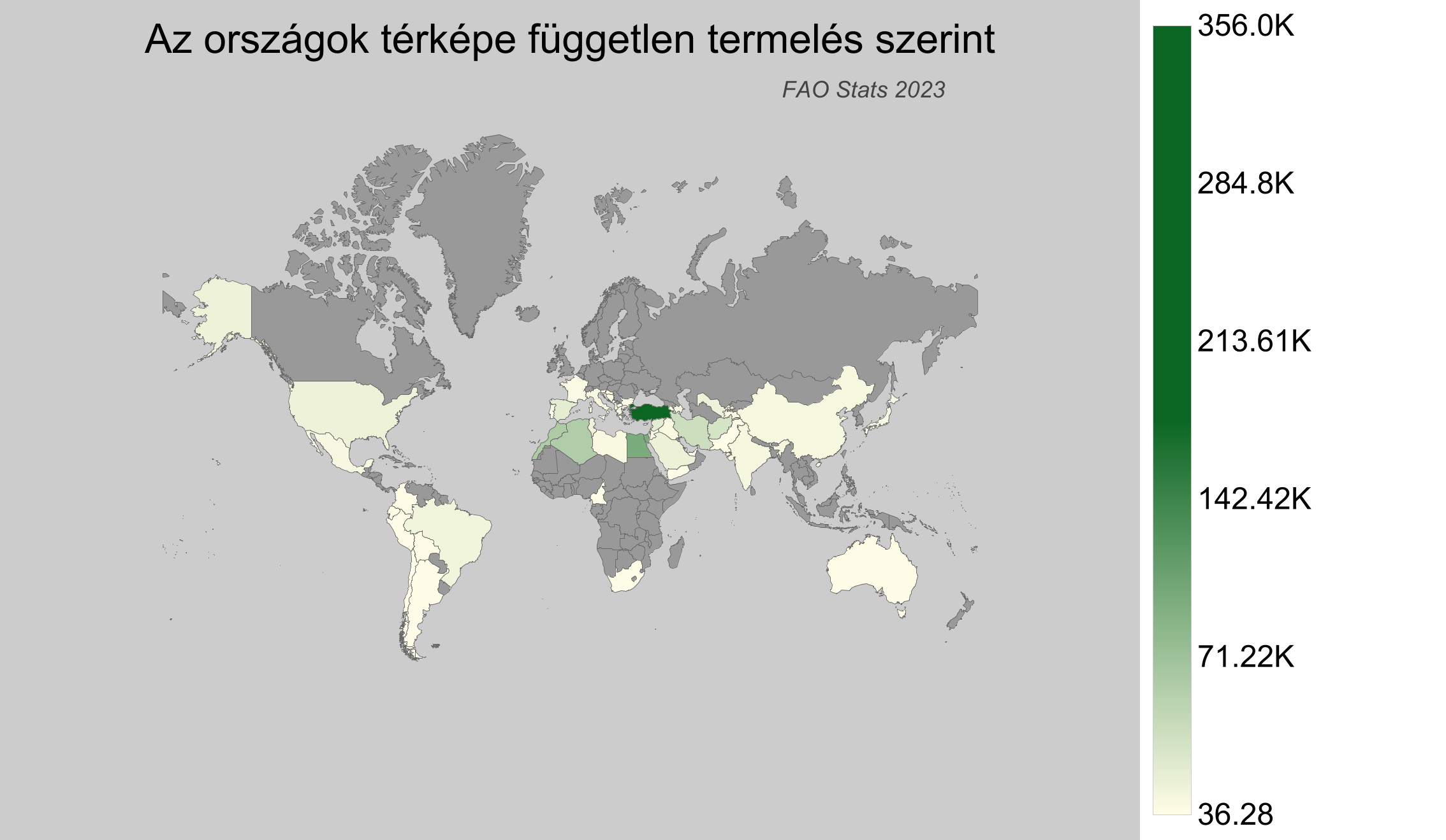 - Egyiptom: jelentős termelés, körülbelül 193 ezer tonna.