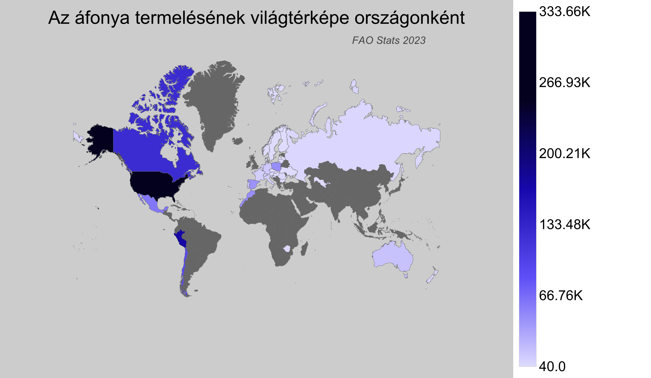- Amerikai Egyesült Államok: Az ország kb. 334 ezer tonna áfonya termelésével a világ legnagyobb termelője.
