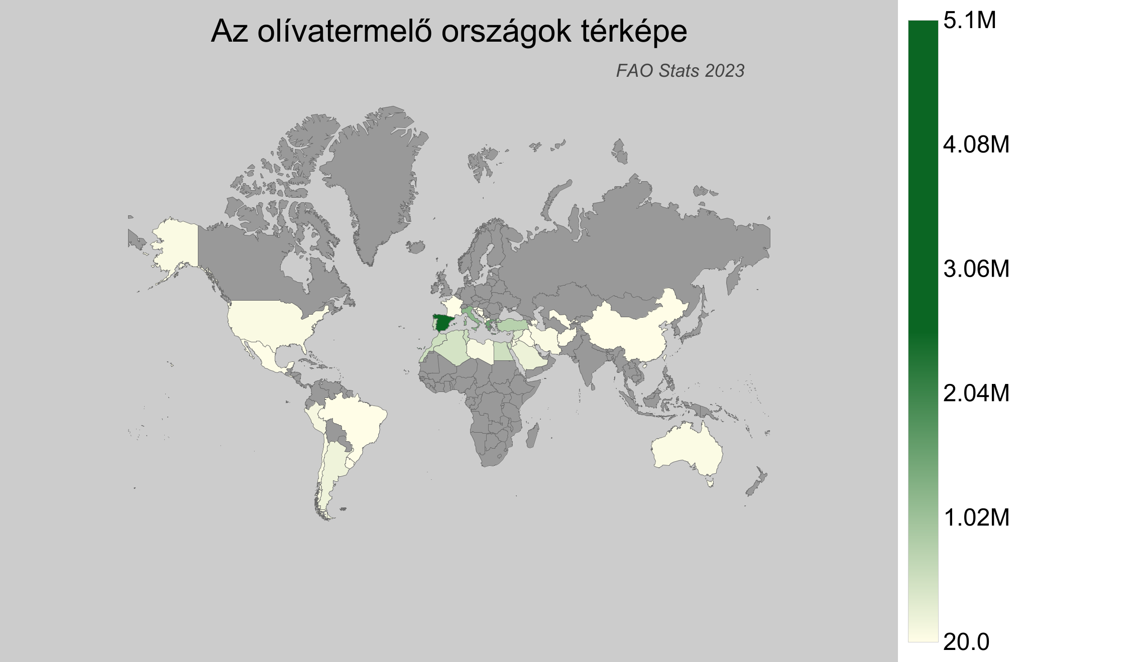 Az olíva fontos szerepet játszik a gasztronómiában a világ minden táján, különös tekintettel a mediterrán étrendre, amely az olíva olajat főként egészséges zsírokként ismerte el. Az olívafa elsősorban a mediterrán éghajlaton virágzik, ahol a meleg, száraz nyarak és az enyhe, csapadékos telek ideális feltételeket biztosítanak. A legfrissebb, 2023-as adatokat tekintve, a világ olívatermelése jelentős szerepet játszik a globális agrárgazdaságban, és ezt az adatot a legfrissebb, 2025-ös FAO statisztikai adatbázisban tették közzé.